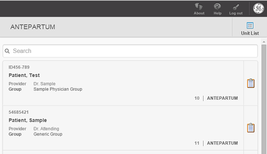 Note: When using Centricity Perinatal Web, you may experience performance delays when accessing units with large numbers of patients.